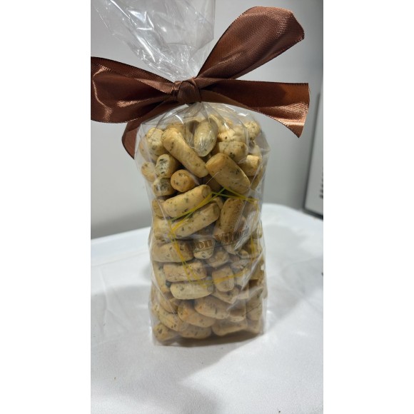 Taralli dal gusto delicato, preparati solo con farina, olio e pochi altri ingredienti. Perfetti come snack quotidiano o in abbinamento a salumi e formaggi.